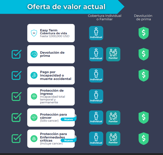 En Olé acompañamos a nuestros asegurados ofreciendo este beneficio en vida, es por eso que tenemos la cobertura adicional más competitiva en el mercado que es devolución de prima al cumplir el termino contratado, por un costo mínimo adicional.